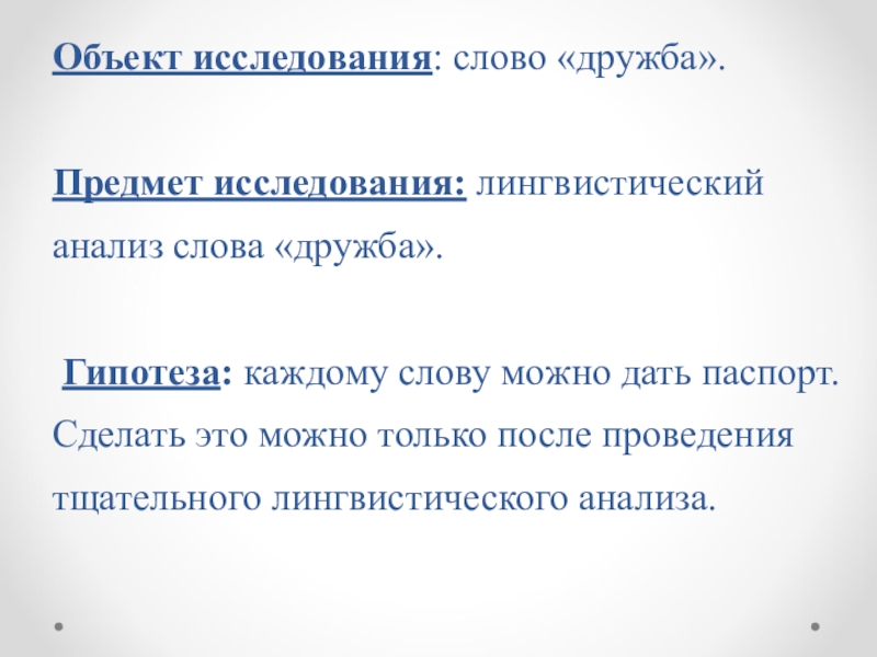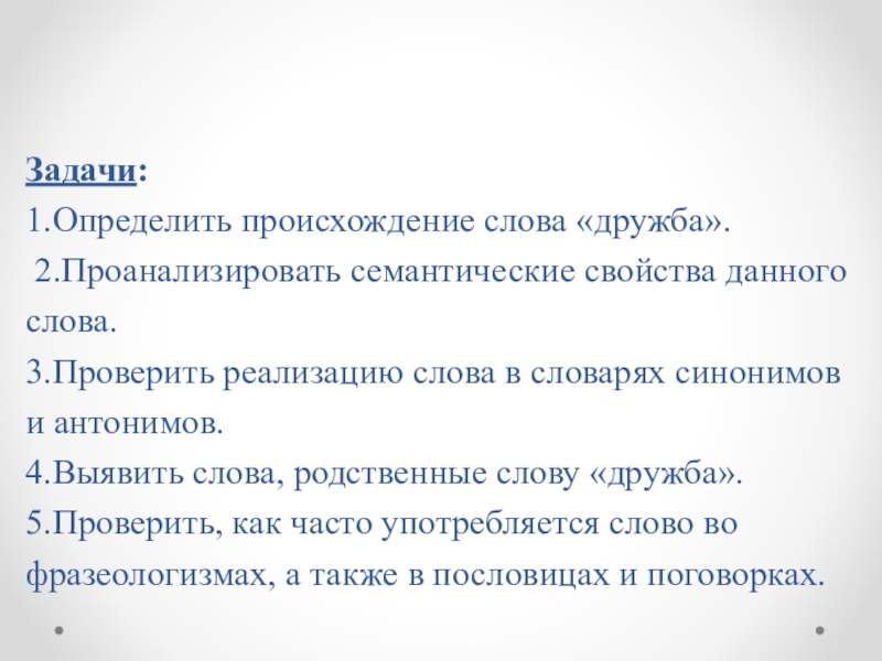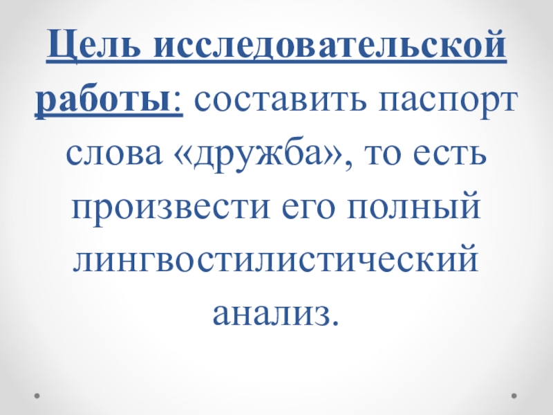 Слайд 4Цель исследовательской работы: составить паспорт слова «дружба», то есть произвести его