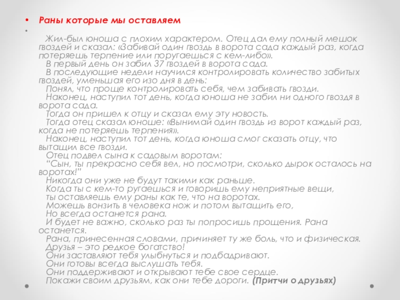 Покажи своим друзьям, как они тебе дороги. (Притчи о друзьях)