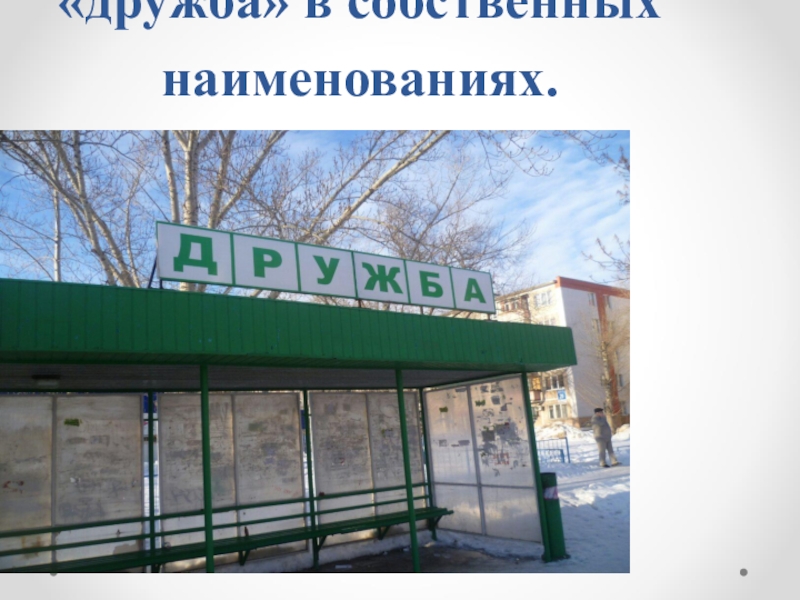 Слайд 16Применение слова «дружба» в собственных наименованиях.