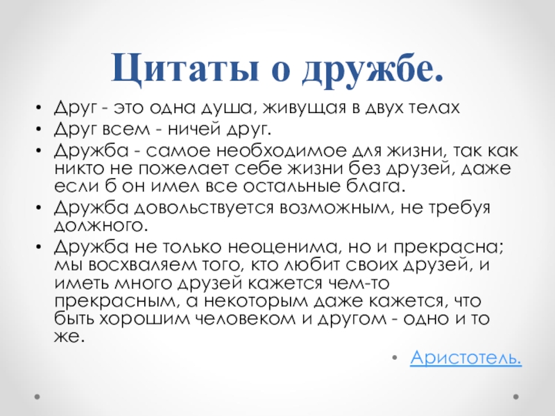 Дружба - самое необходимое для жизни, так как никто не пожелает себе жизни без друзей, даже если б он имел все остальные блага.