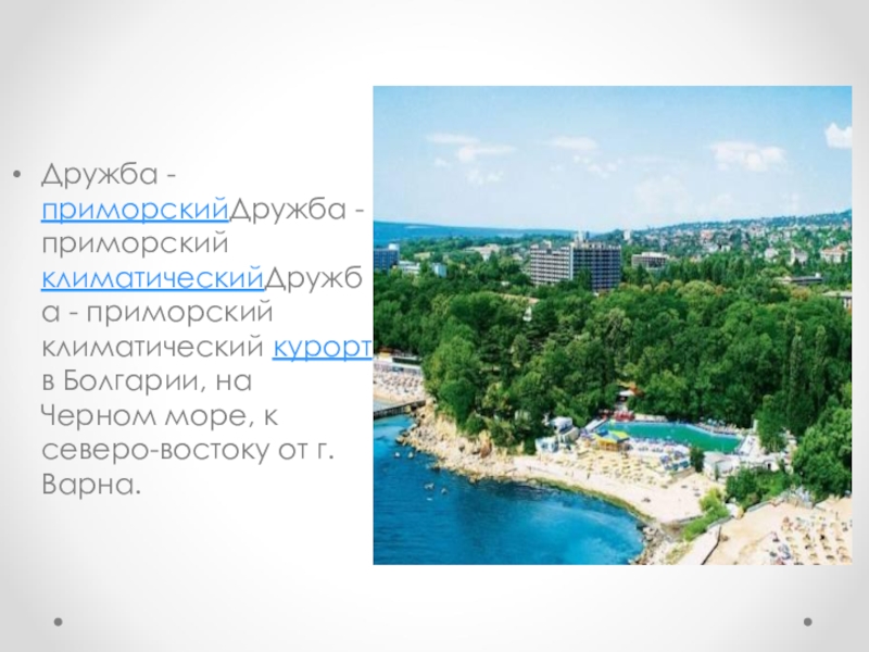 Слайд 21Дружба - приморскийДружба - приморский климатическийДружба - приморский климатический курорт в