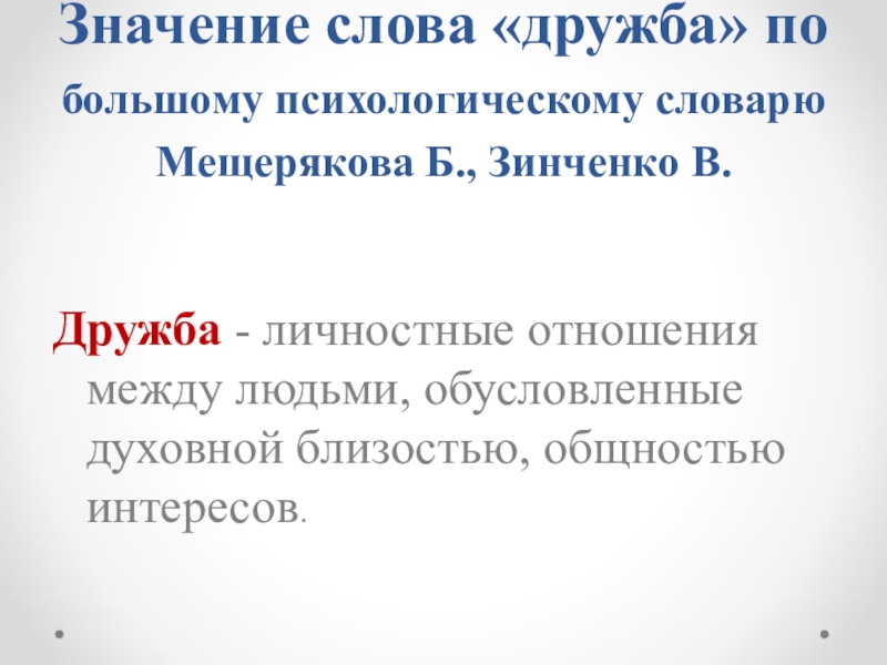 Значение слова «дружба» по большому психологическому словарю Мещерякова Б., Зинченко В.