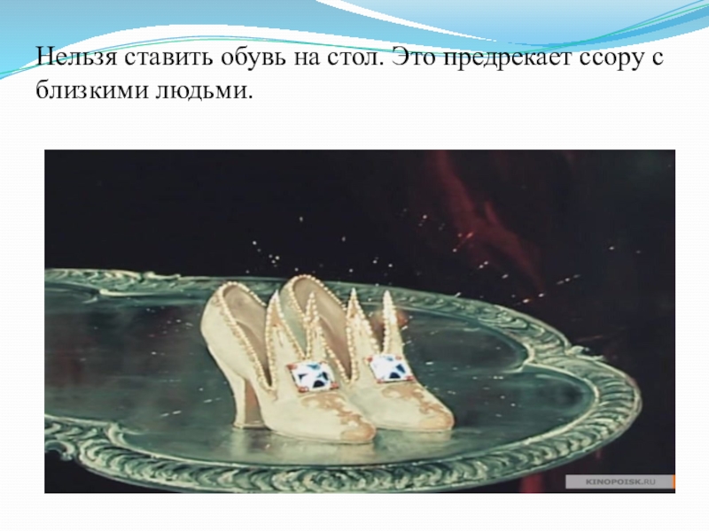 Слайд 19Нельзя ставить обувь на стол. Это предрекает ссору с близкими людьми.