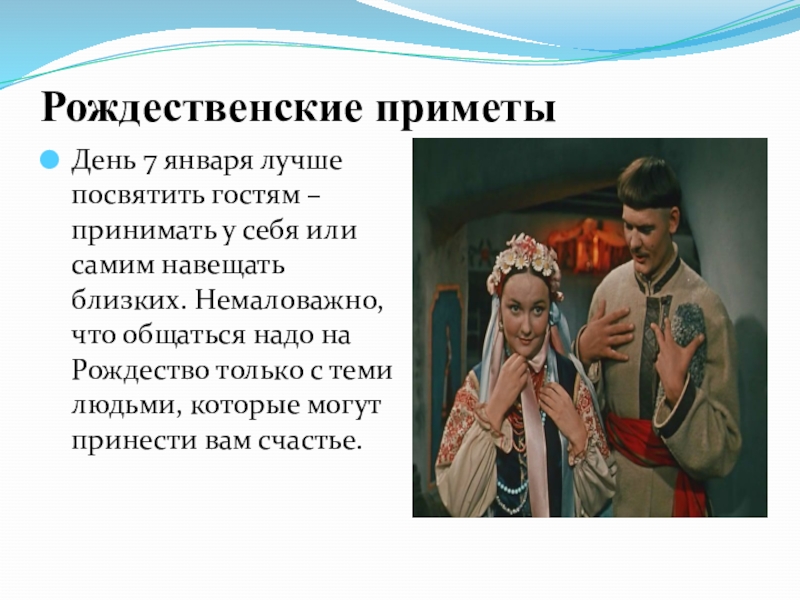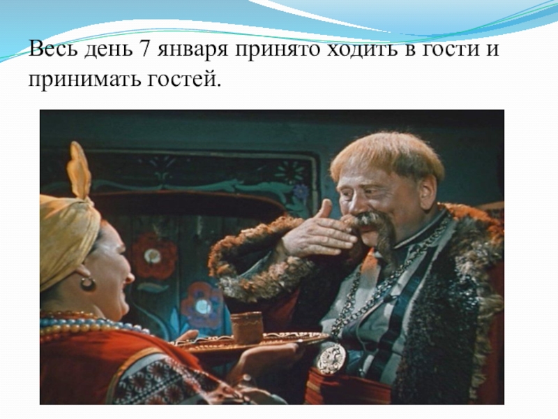 Слайд 20Весь день 7 января принято ходить в гости и принимать гостей.