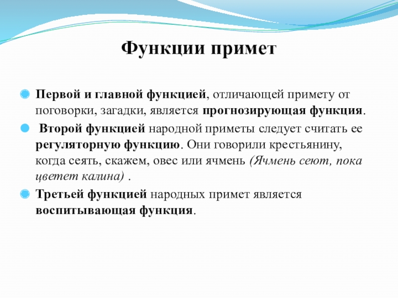 Первой и главной функцией, отличающей примету от поговорки, загадки, является
