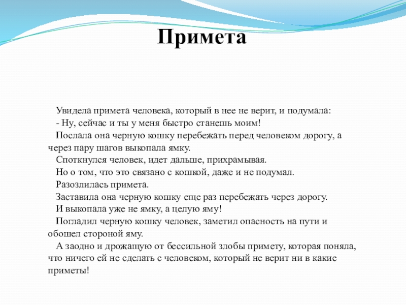 А заодно и дрожащую от бессильной злобы примету, которая поняла, что ничего ей не сделать с человеком, который не верит ни в какие приметы!
