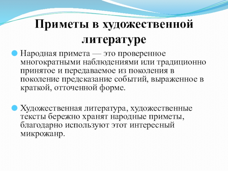Художественная литература, художественные тексты бережно хранят народные приметы, благодарно используют этот интересный микрожанр.