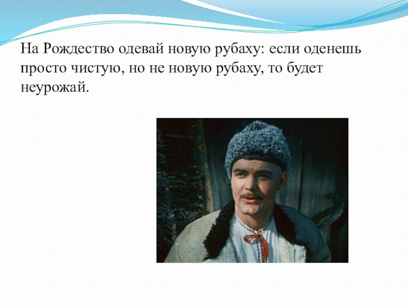 Слайд 16На Рождество одевай новую рубаху: если оденешь просто чистую, но не