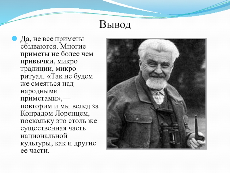 микро традиции, микро ритуал. «Так не будем же смеяться над народными приметами»,— повторим и мы вслед за Конрадом Лоренцем, поскольку это столь же существенная часть национальной культуры, как и другие ее части.