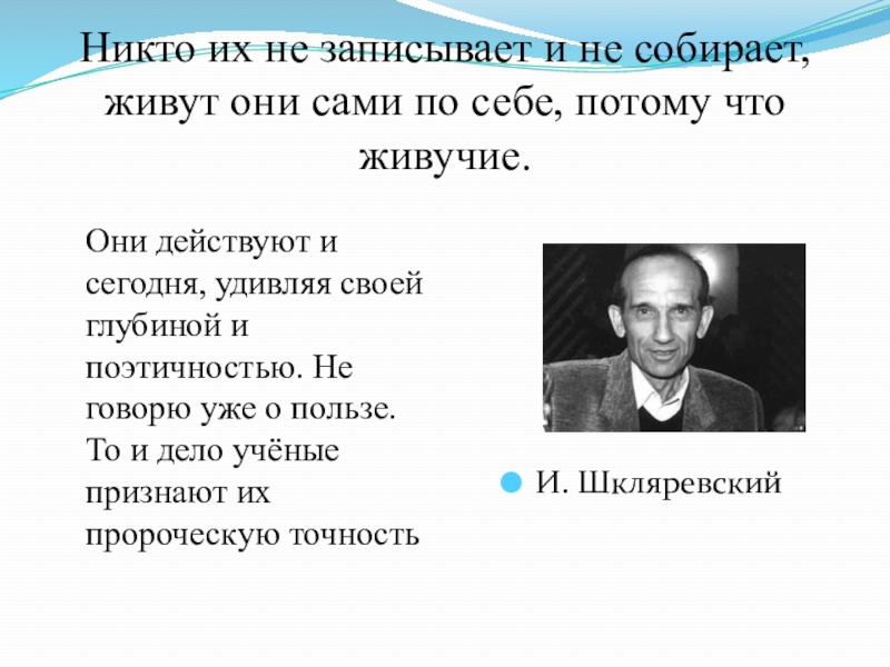 Слайд 6Никто их не записывает и не собирает, живут они сами по