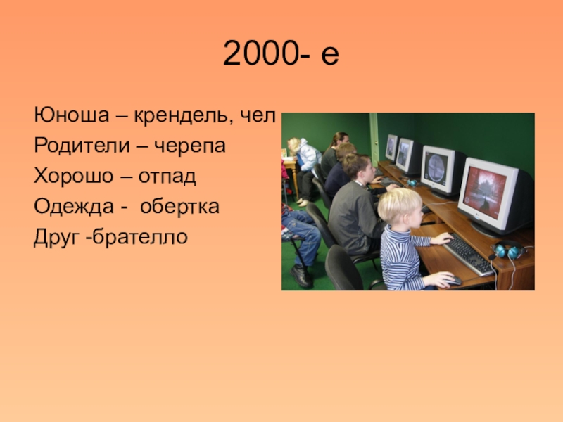 2000- е Юноша – крендель, челРодители – черепаХорошо – отпадОдежда - оберткаДруг -брателло