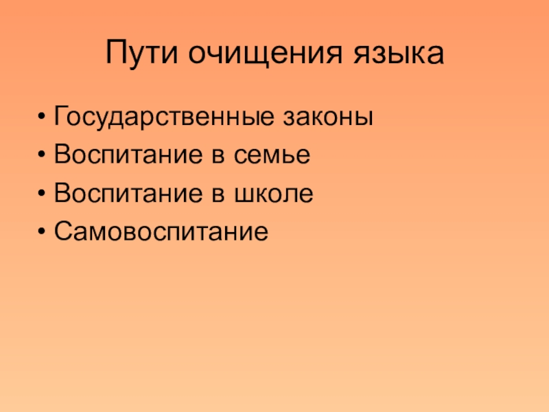 Пути очищения языкаГосударственные законыВоспитание в семьеВоспитание в школеСамовоспитание