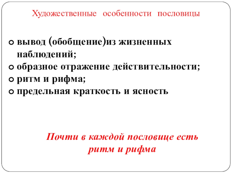 Почти в каждой пословице есть ритм и рифма