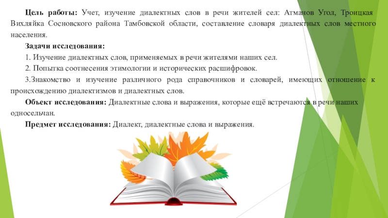Угол, Троицкая Вихляйка Сосновского района Тамбовской области, составление словаря диалектных слов местного населения.