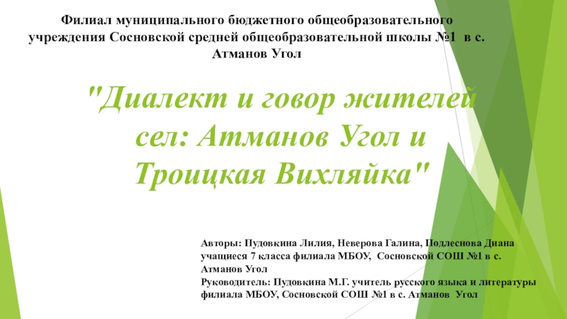 Слайд 13Диалектные слова сел Атманов Угол и Троицкая Вихляйка