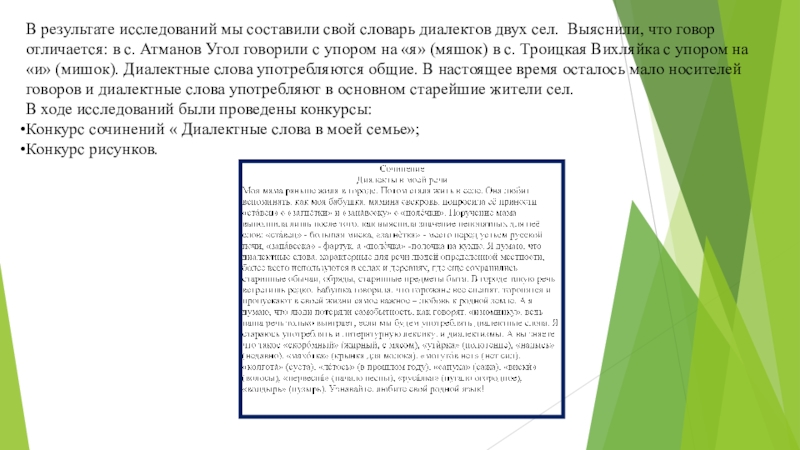 Слайд 11В результате исследований мы составили свой словарь диалектов двух сел. Выяснили,