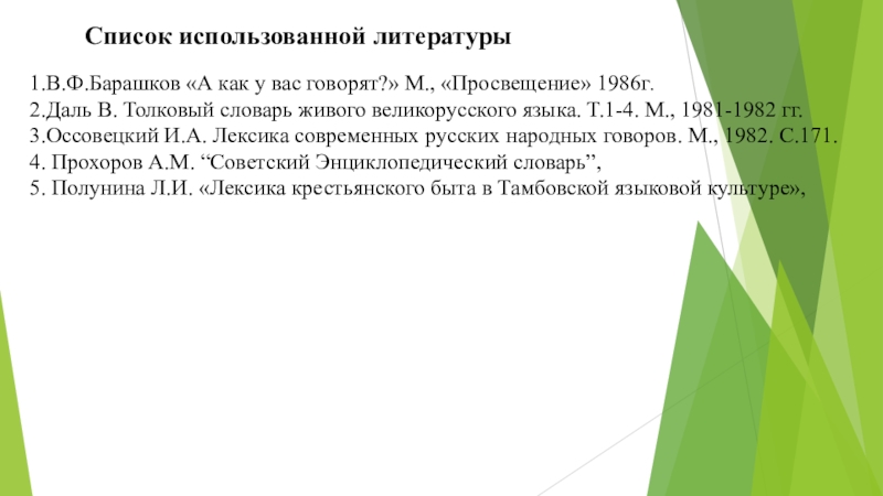 5. Полунина Л.И. «Лексика крестьянского быта в Тамбовской языковой культуре»,