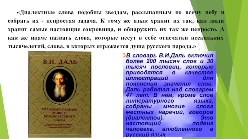 Слайд 7«Диалектные слова подобны звездам, рассыпанным по всему небу и собрать их