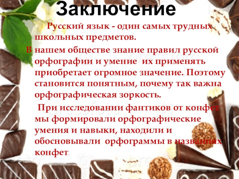 Орфограммы русского языка в фантиках от конфет