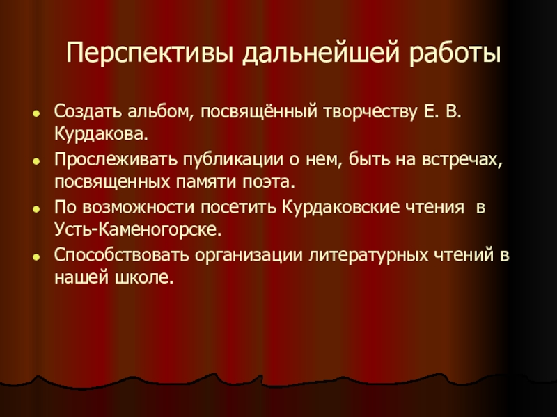 Создать альбом, посвящённый творчеству Е. В. Курдакова.