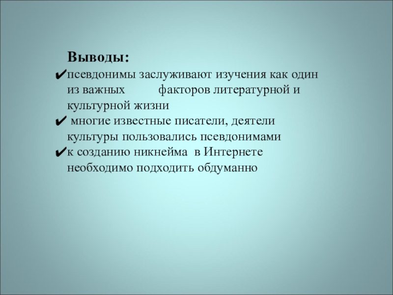 Слайд 30Какими будут псевдонимы завтра? На этот вопрос ответит время…