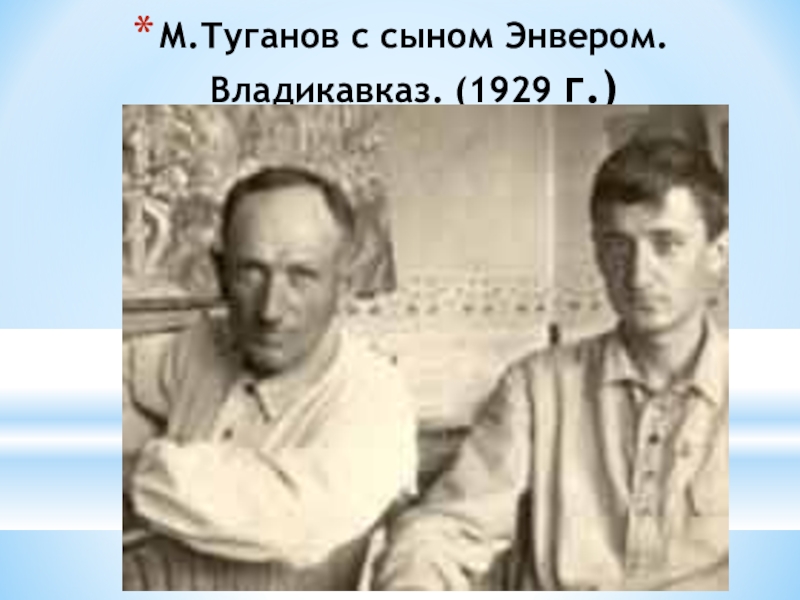 Слайд 14М.Туганов с сыном Энвером.Владикавказ. (1929 г.)