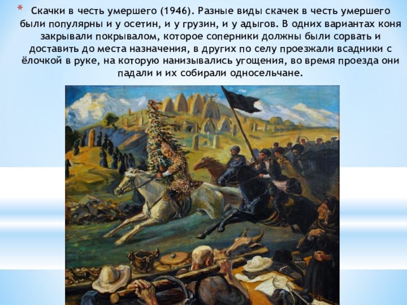 Слайд 26Скачки в честь умершего (1946). Разные виды скачек в честь умершего