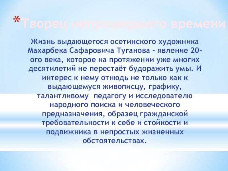 Жизнь выдающегося осетинского художника Махарбека Сафаровича Туганова – явление