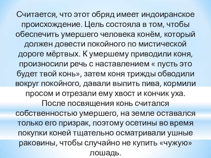 Слайд 28Считается, что этот обряд имеет индоиранское происхождение. Цель состояла в том,