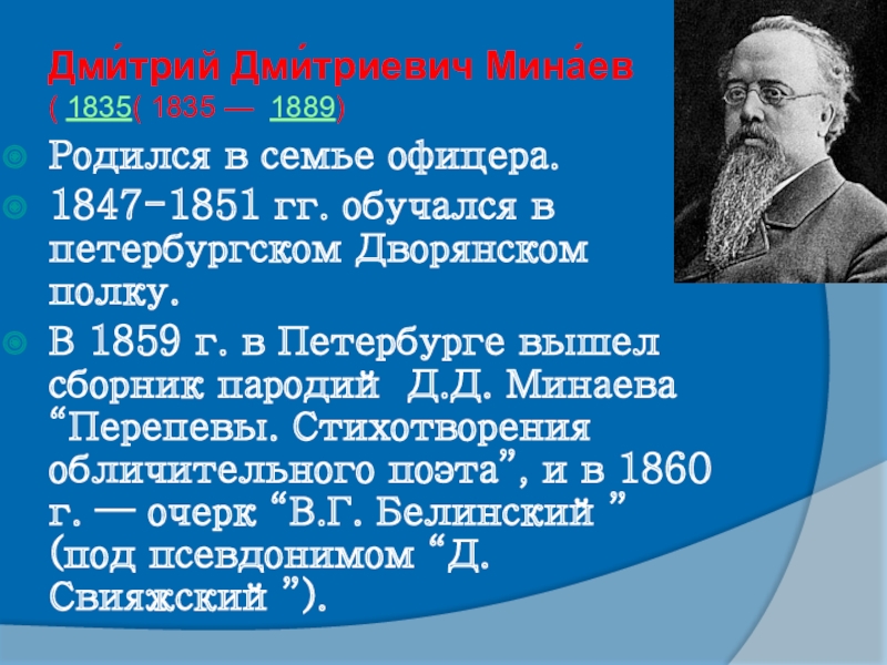 Слайд 6Дми́трий Дми́триевич Мина́ев ( 1835( 1835 —  1889)