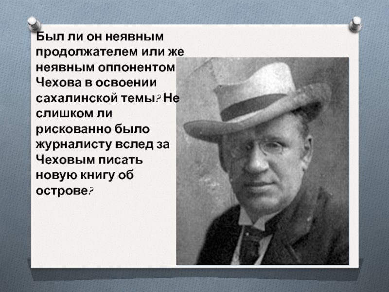 Был ли он неявным продолжателем или же неявным оппонентом Чехова в освоении сахалинской темы? Не слишком ли
