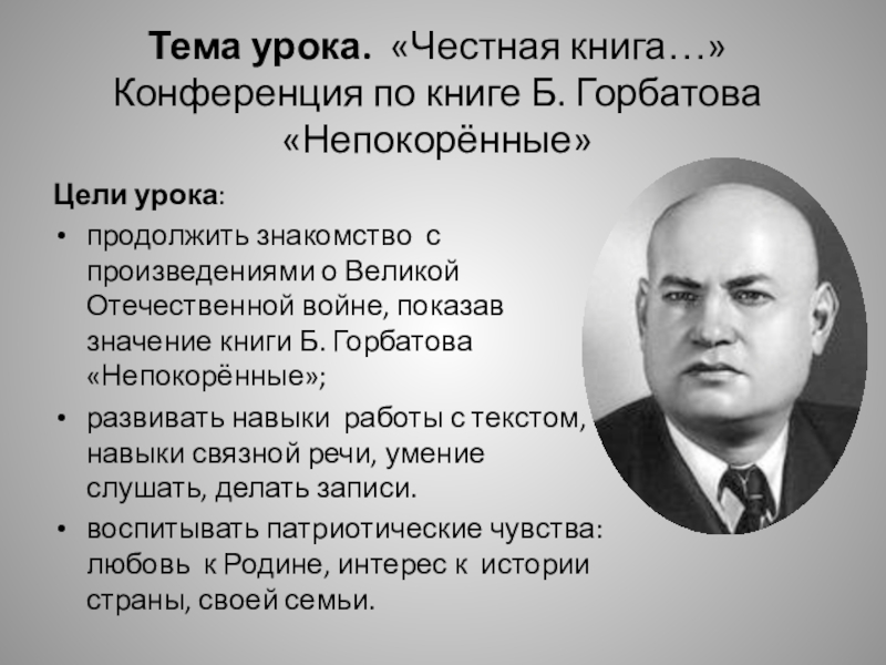 Конференция по книге Б. Горбатова «Непокорённые»