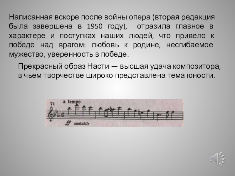 Прекрасный образ Насти — высшая удача композитора, в чьем творчестве широко представлена тема юности.
