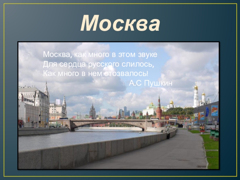 МоскваМосква, как много в этом звуке  Для сердца русского слилось,  Как много в нем отозвалось!