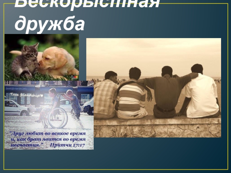 Слайд 28Бескорыстная дружба