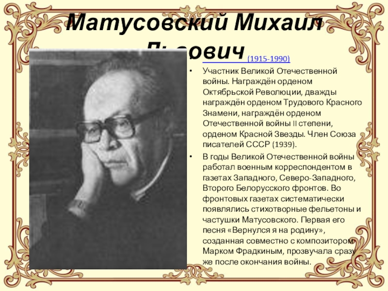 Слайд 15Матусовский Михаил Львович