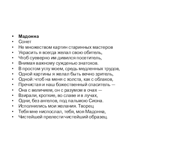 Тебя мне ниспослал, тебя, моя Мадонна,