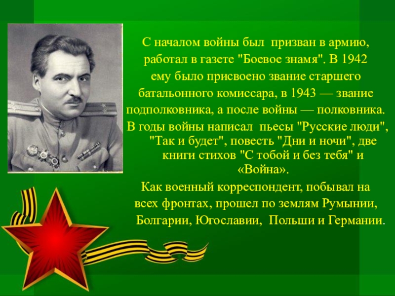 Летом 1939 года Симонов был направлен на Халхин-Гол в Монголию в качестве сотрудника газеты «Героическая красноармейская». Здесь поэт услышал первые раскаты будущей Второй мировой войны.