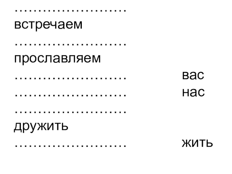 прославляем …………………… вас …………………… нас …………………… дружить …………………… жить