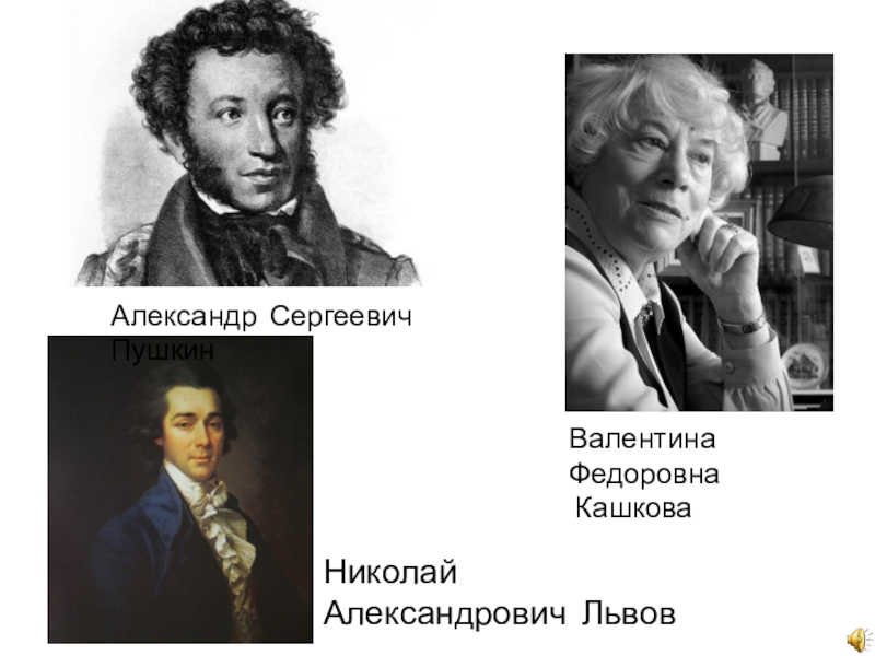 Александр Сергеевич ПушкинНиколай Александрович ЛьвовВалентина Федоровна   Кашкова