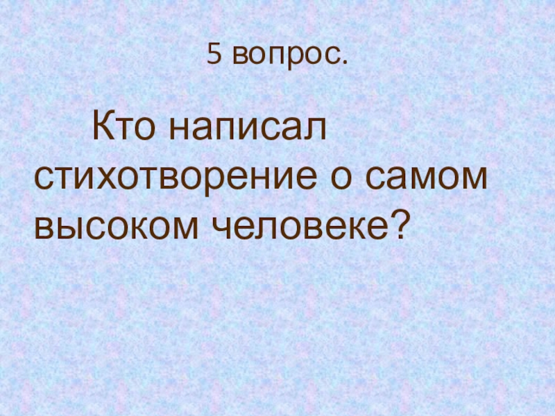 5 вопрос.   Кто написал стихотворение о самом высоком человеке?