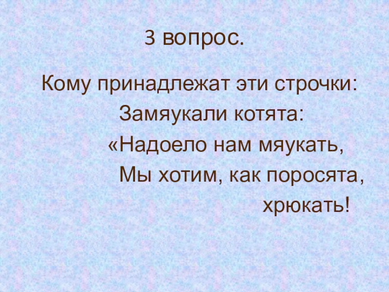 3 вопрос.  Кому принадлежат эти строчки:         Замяукали котята: