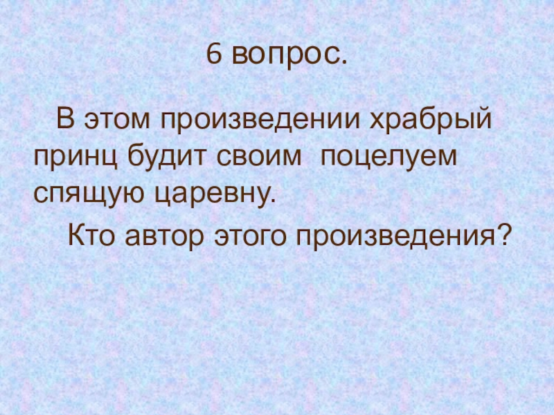 6 вопрос.  В этом произведении храбрый принц будит своим поцелуем спящую царевну.   Кто автор