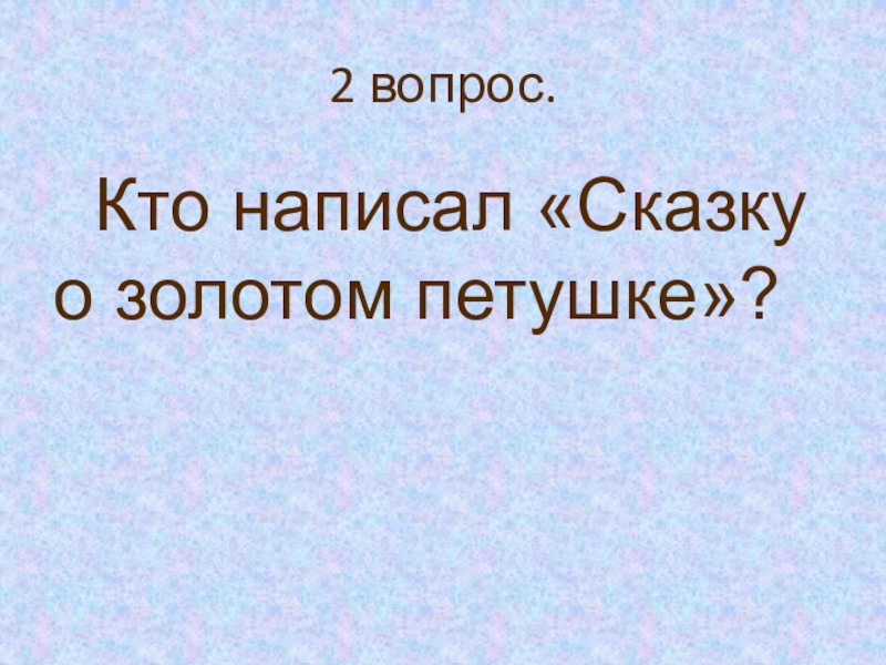 2 вопрос. Кто написал «Сказку о золотом петушке»?