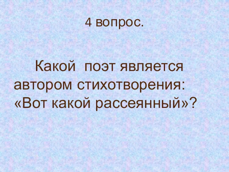 4 вопрос.    Какой поэт является  автором стихотворения: «Вот какой рассеянный»?