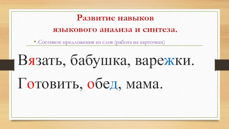 Слайд 19Развитие навыков понимания и выполнения логико-грамматических конструкций.