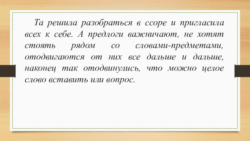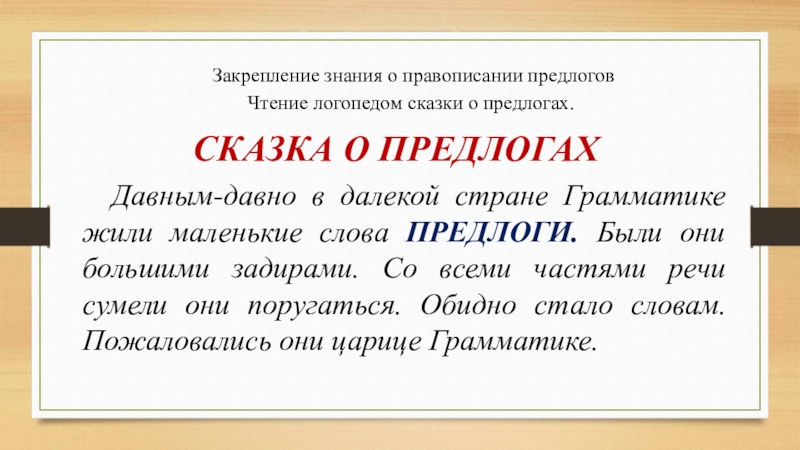 в далекой стране Грамматике жили маленькие слова ПРЕДЛОГИ. Были они большими задирами. Со всеми частями речи сумели они поругаться. Обидно стало словам. Пожаловались они царице Грамматике.