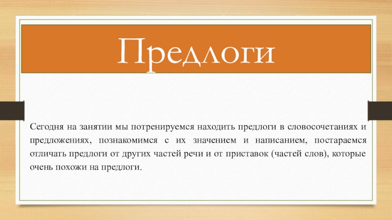 познакомимся с их значением и написанием, постараемся отличать предлоги от других частей речи и от приставок (частей слов), которые очень похожи на предлоги.