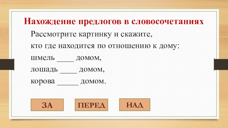 Знакомство с предлогами, с их значением и ролью в предложениях и