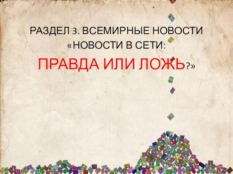 РАЗДЕЛ 3. ВСЕМИРНЫЕ НОВОСТИ«НОВОСТИ В СЕТИ: ПРАВДА ИЛИ ЛОЖЬ?»